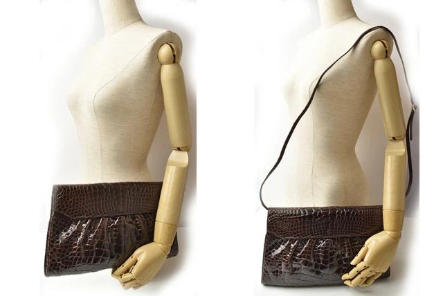GUCCI ヴィンテージ オールド バッグ クロコダイル ダークブラウン ストラップ付