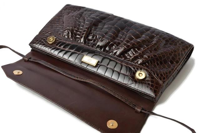 グッチより、ショルダーバッグ/クラッチバッグ/ポーチです。艶感のあるクロコダイル革が、高級感を漂わせます。レトロな雰囲気を残しつつ、今でも変わることのない飽きのこないデザインです。