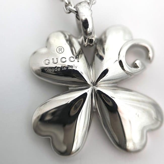 グッチ クローバー ネックレス ec-23371 シルバー 新品 仕上げ済み Ag 925 Sランク GUCCI G ロゴ カット 定番 人気 女性 レディース 小物 アクセサリー ジュエリー 宝飾 箱付き 箱 シンプル お洒落 エレガント グッチアクセサリー 上品 ブランド 本物 鑑定済み