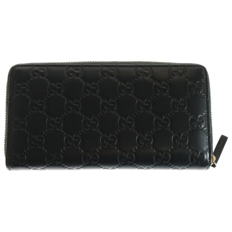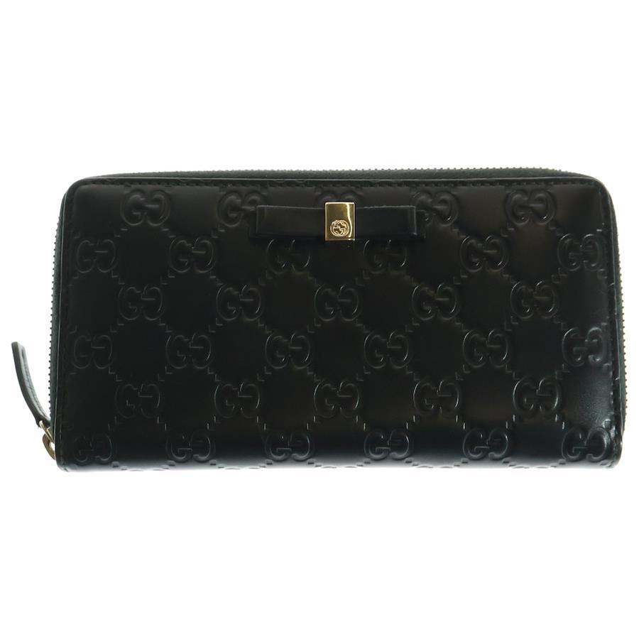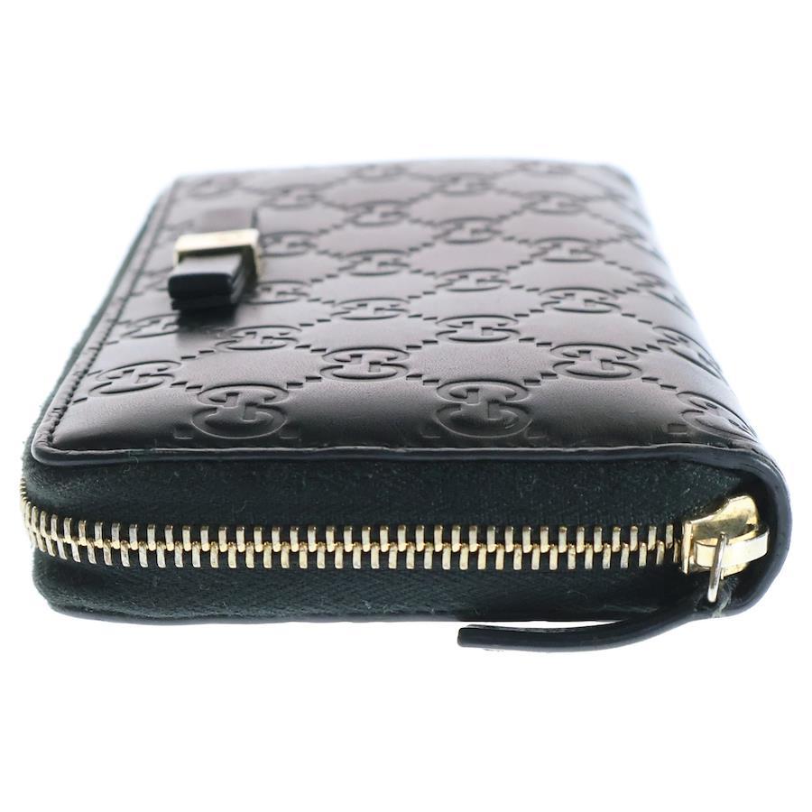 [モデル]グッチシマ インターロッキングG ロゴプレート リボン レザー ラウンドファスナー ロングウォレット 長財布 ゴールド金具 ブラック
