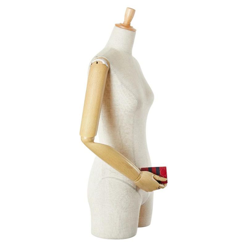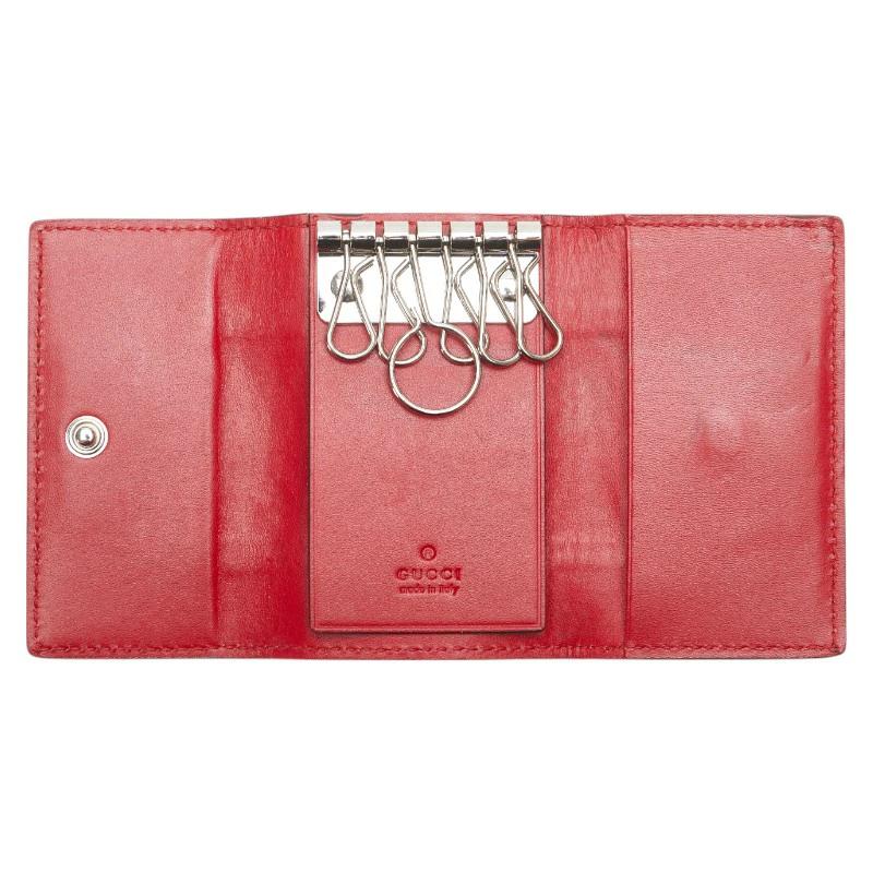 Pre-owned Gucci Guccissima Sherry Line 6-Ring Key Case 408828 in Red and Navy Leather. Women's.