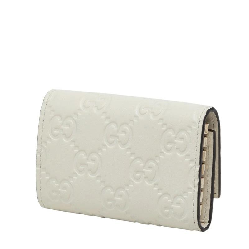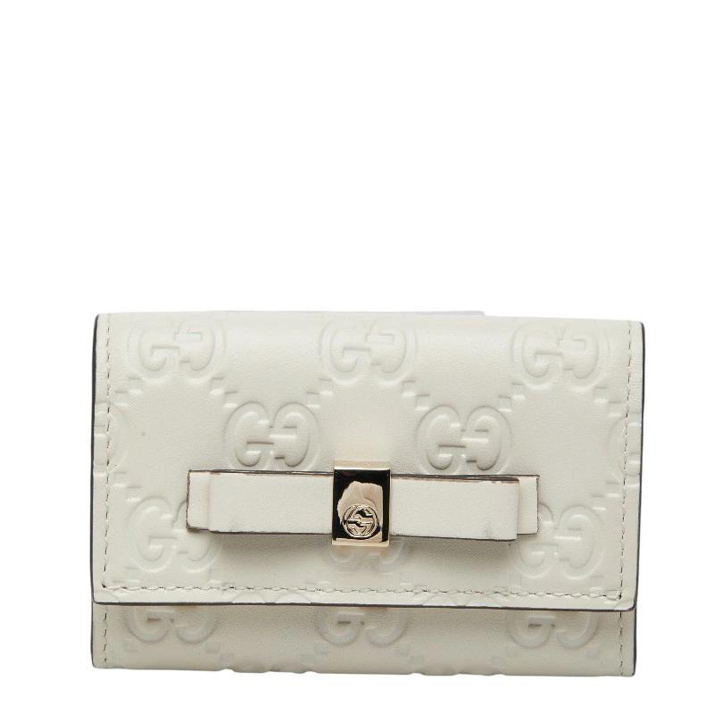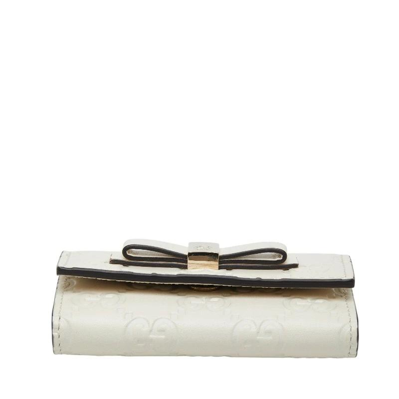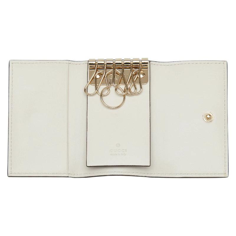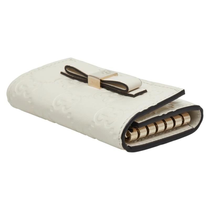 - グッチ グッチシマ リボン キーケース 6連 388682 ホワイト レザー レディース GUCCI 【中古】