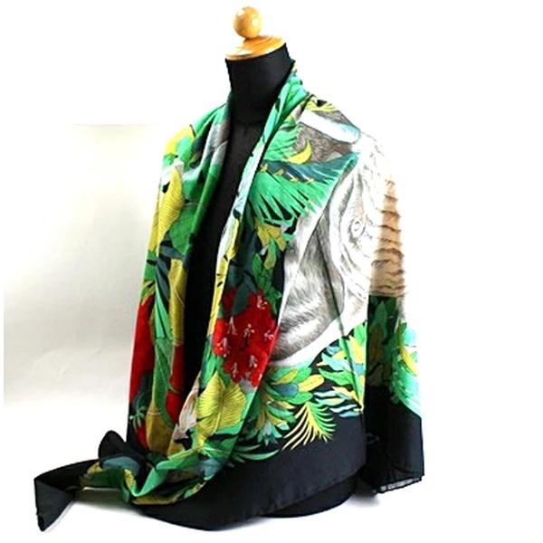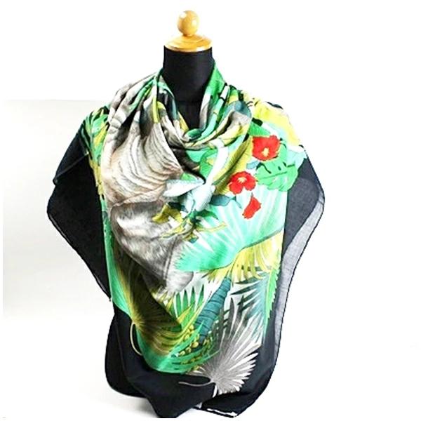 | 商品名 | グッチ コットン 大判ストール 正方形 ブラック×マルチカラー 象 花柄 中古 Aランク GUCCI |