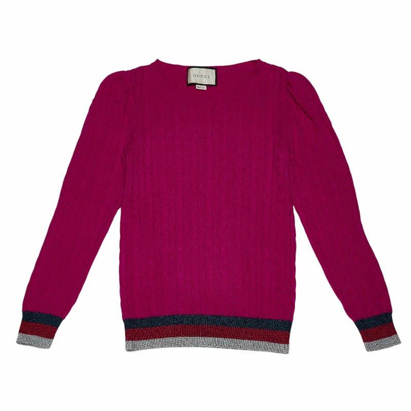 - グッチ シェリーライン ケーブル セーター ニット サイズL パープル系 カシミヤ レーヨン 金属繊維 レディース GUCCI 【中古】