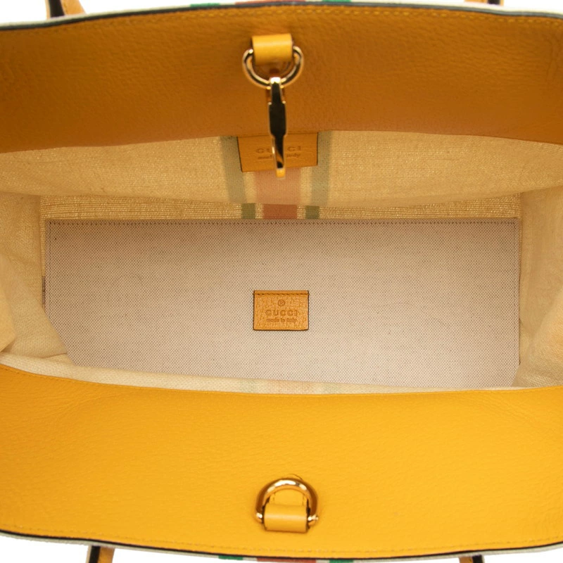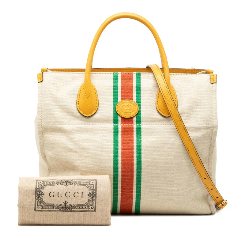 - グッチ シェリーライン トートバッグ ショルダーバッグ 2WAY 657422 イエロー ホワイト キャンバス レザー レディース GUCCI 【中古】