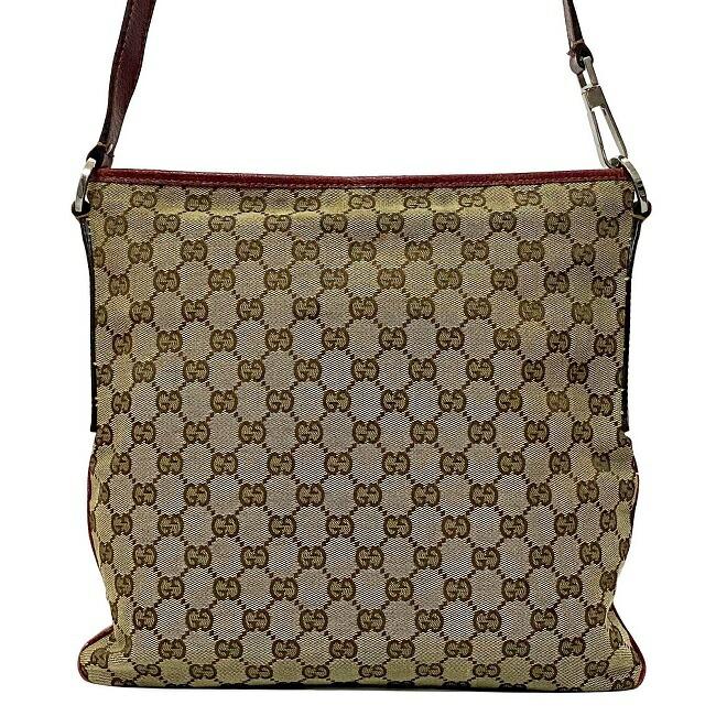 Gucci Shoulder Bag Beige Red GG Canvas 113013 Crossbody Canvas Leather Used GUCCI Red Thin Vintage Lightweight