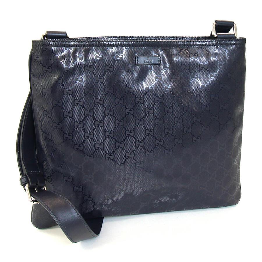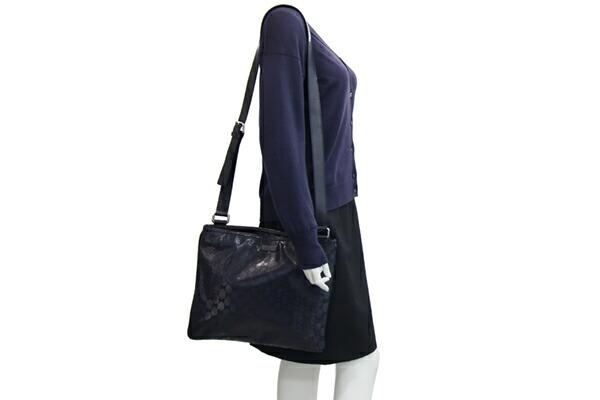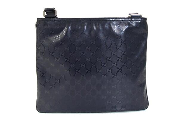 グッチショルダーバッグGGインプリメ201446ネイビーPVCレザー中古斜め掛けロゴフラットマチ無しメンズGUCCI
