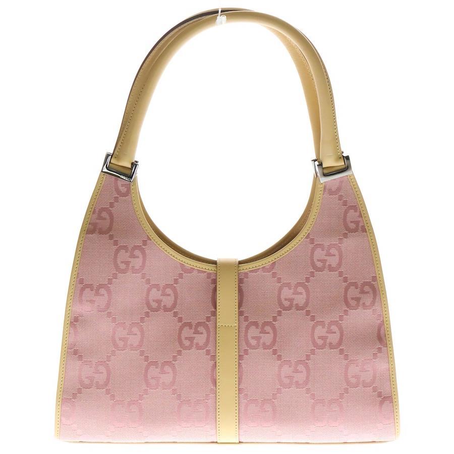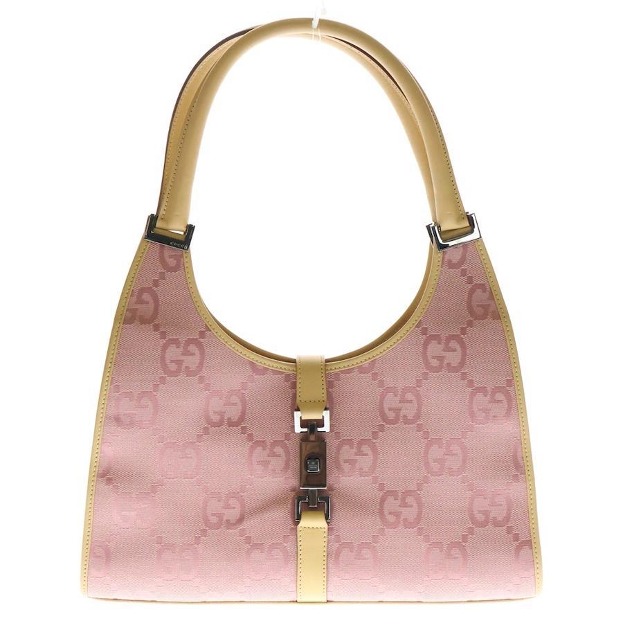 [モデル]ジャッキー GGキャンバス ハンドバッグ ワンショルダーバッグ ベージュ×ピンク ガンメタ金具 キャンバス×レザー 002-1067
