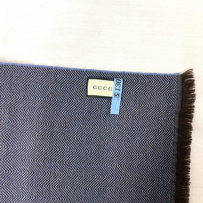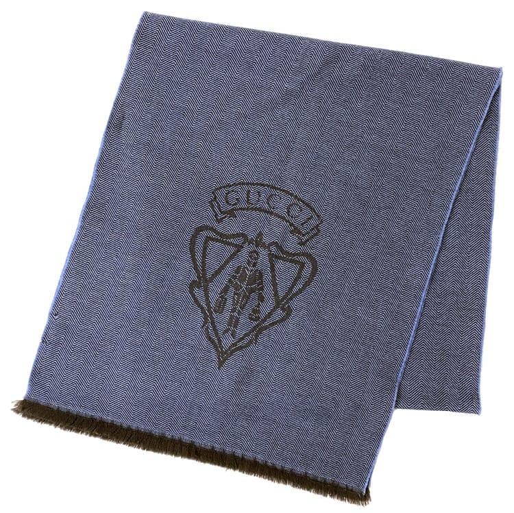 グッチ ストール ec-22490 ネイビー ブラウン ヒステリア 美品 クリーニング済み ウール 中古 GUCCI 刺繍 フリンジ 編み込み マフラー シンプル ロゴ 定番 人気 レディース メンズ 紺色 茶色 お洒落 小物 秋冬 ファッション 高級感 上品 ブランド 本物 鑑定済み