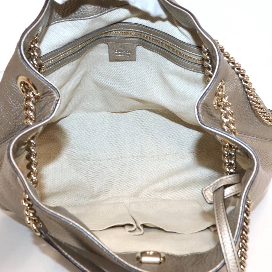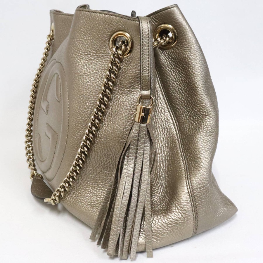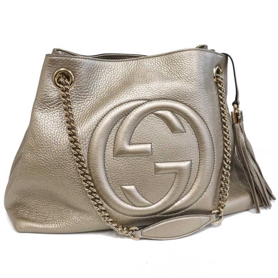 グッチのチェーンショルダーバッグ、ソーホー インターロッキングG(308982)の中古品です。ゴールドカラーが上品です。底部にほんのわずかにスレがあります。タッセルの金具に傷があります。使用感が少なく、程度のよいお品物です。+---+---+---+---+---+。{状態}外側A内側A{素材}レザー{サイズ}約W41cm × H24cm × D14cm。{その他}ファスナー式内ポケット×1内ポケット×2。{付属品}なし{お問合せ商品番号}26036010+---+---+---+---+---+。