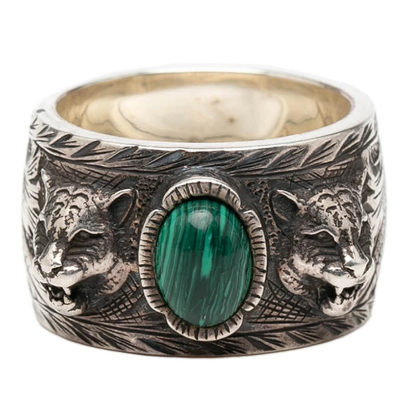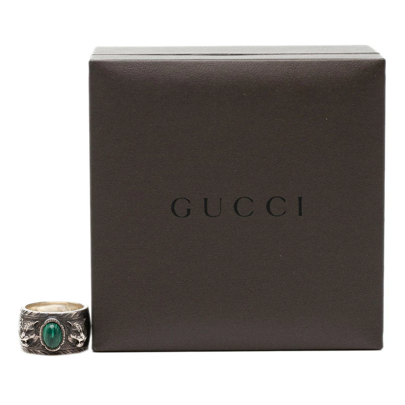 - グッチ タイガーヘッド リング 指輪 #23 シルバー グリーン SV925 シルバー マカライト メンズ GUCCI 【中古】