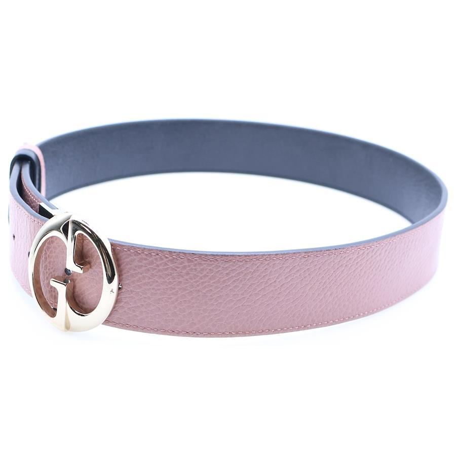 [モデル]ダブルG リバーシブルベルト ピンク×ブラック ゴールド金具 レザー 450000