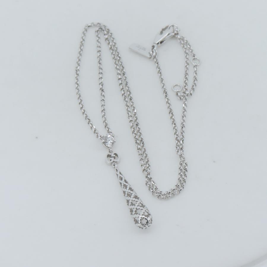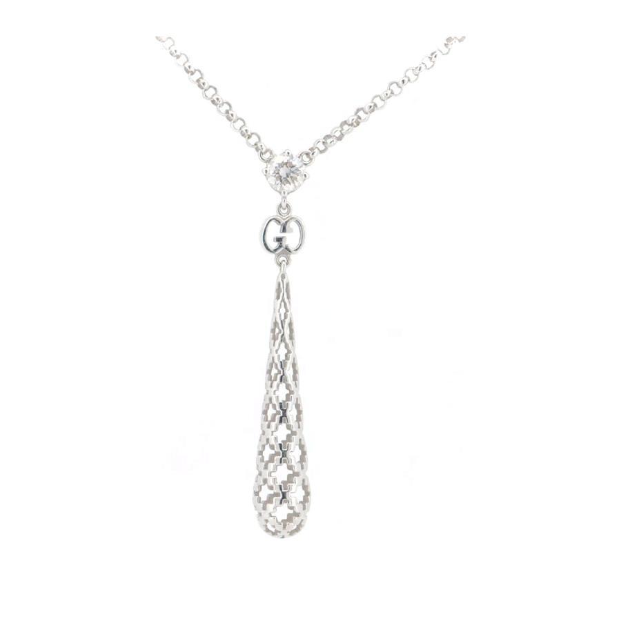 Gucci Diamantissima Drop Mesh GG Logo Diamond Necklace K18WG (18k White Gold) - Pawn Shop Item