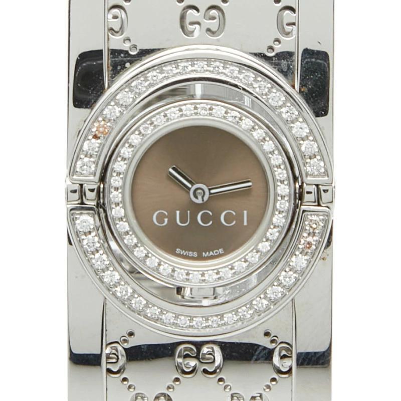 Pre-owned Gucci Toile Diamond Bezel Bangle Watch, Quartz Movement, Brown Dial, Stainless Steel, Women's.