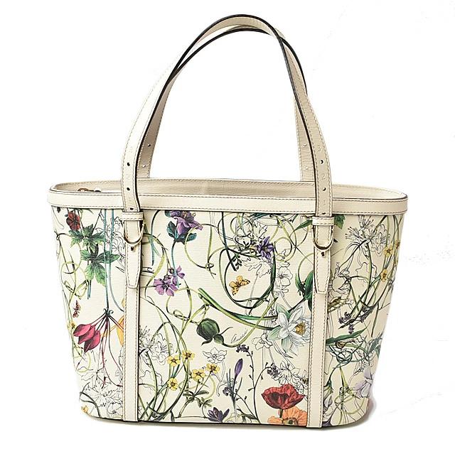GUCCI フラワーモチーフ プリント/レザー オフホワイト 336776