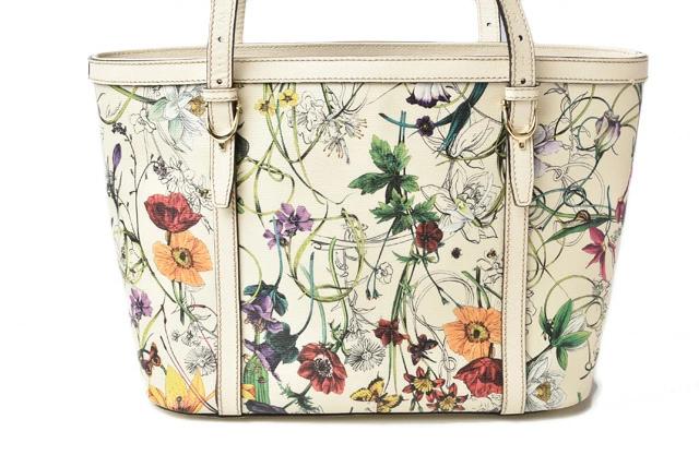 グッチより、フラワー柄がプリントされた、普段使いに最適なサイズのトートバッグです。内側のライニングのキャンバスとレザーの組み合わせがオシャレで。持ち運びやすいデザインでランチタイムや、ちょっとしたお出かけに最適です。