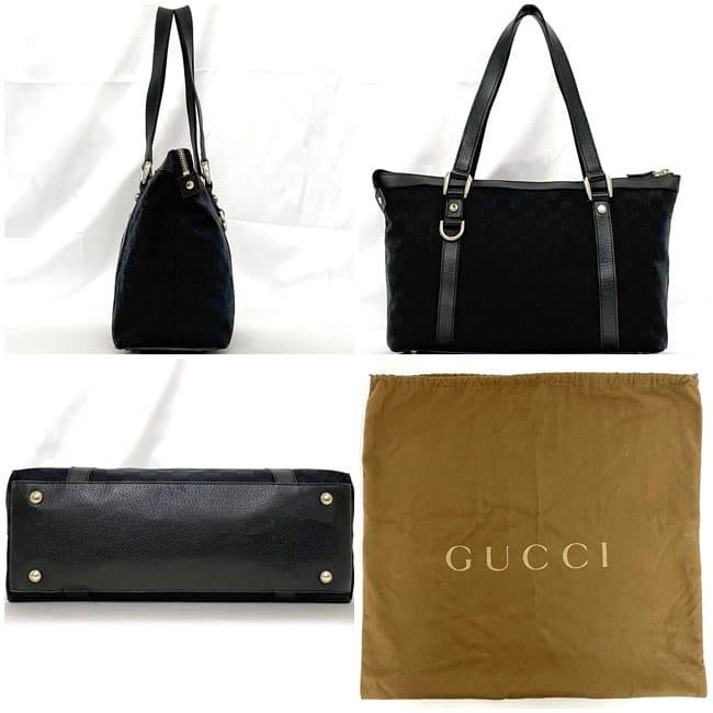 グッチ トートバッグ ec-23354 ブラック GGキャンバス 141470 軽い キャンバス レザー 中古 12026 GUCCI ファスナー 黒 GG 総柄 ハンドバッグ マチ有 ヴィンテージ メンズ レディース 定番 人気 シンプル 肩掛け キャンバスバッグ ブランド 本物 鑑定済み