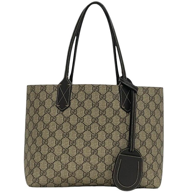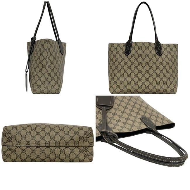 グッチ トートバッグ f-24091 ベージュ ダークブラウン GGスプリーム 372618 美品 PVC レザー 中古 303782 GUCCI GG 軽い 肩掛け リバーシブル メンズ レディース 男女兼用 定番 人気 使いやすいサイズ 普段使い コーティング ロゴ 総柄 ブランド 本物 鑑定済み