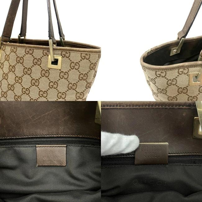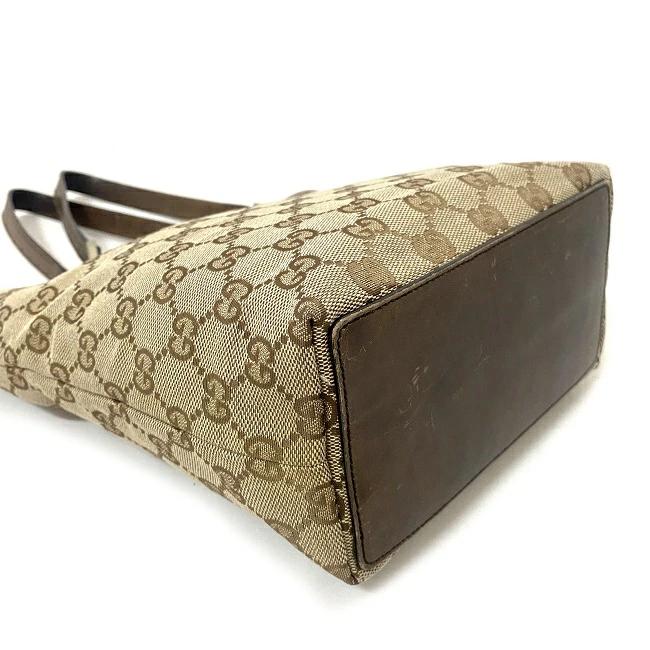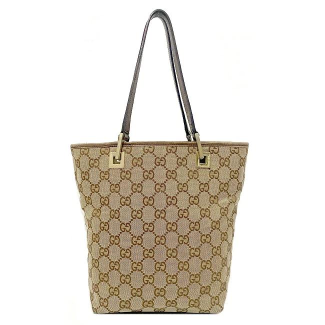 Gucci Tote Bag Beige Brown 001 1099 GG Canvas Leather Used GUCCI Vintage Bucket Handbag Bucket Bag