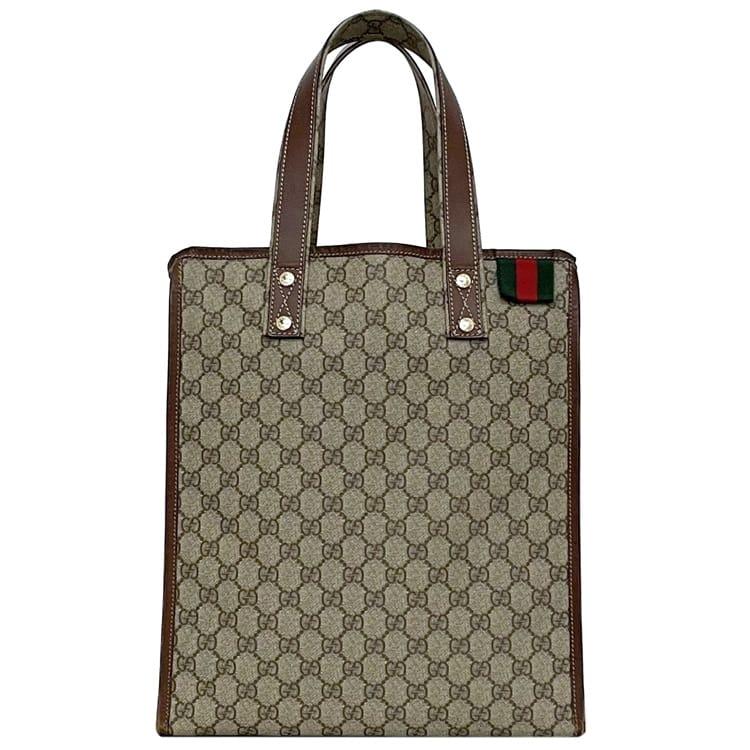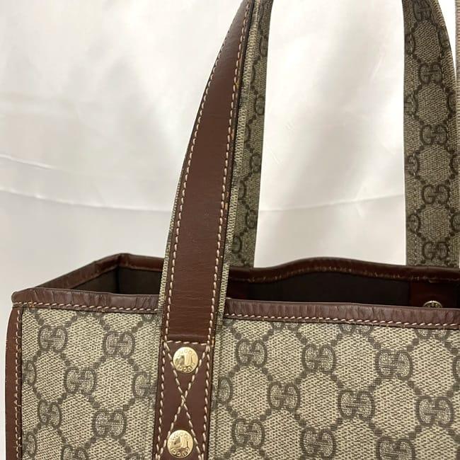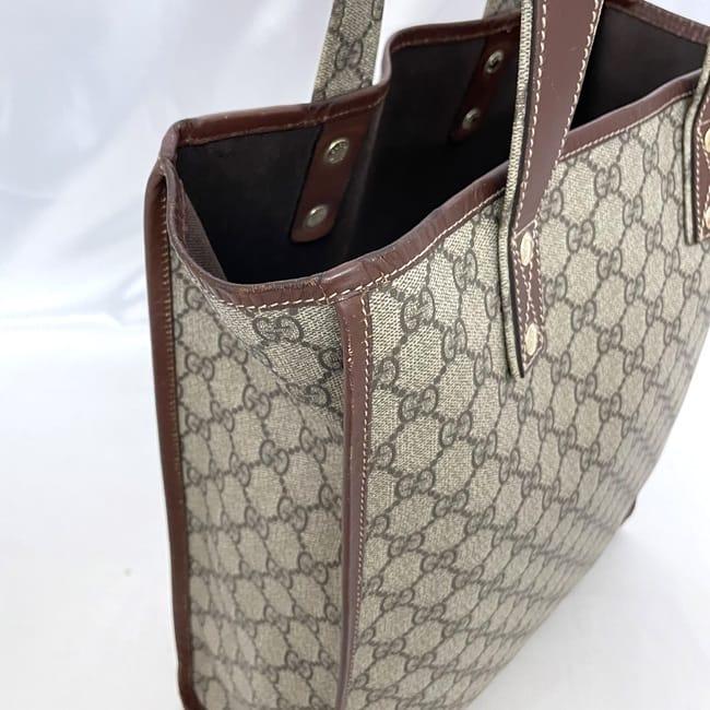 グッチ トートバッグ ec-23328 ベージュ ブラウン GGスプリーム シェリー 211135 軽い PVC レザー 中古 GUCCI 軽い GG 総柄 縦型 書類 ロゴ 定番 人気 女性 レディース トート バッグ 鞄 お洒落 シンプル 通勤 通学 仕事 ビジネス 上品 ブランド 本物 鑑定済み