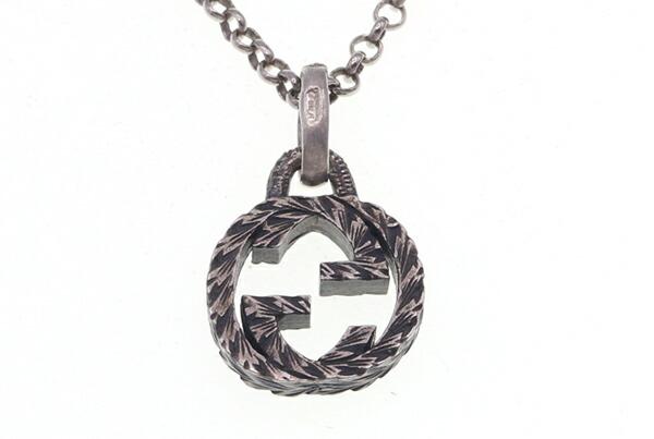 グッチネックレスインターロッキングG455535SVスターリグシルバー925中古アクセサリーペンダントチョーカーアラベスクレディースメンズGUCCI