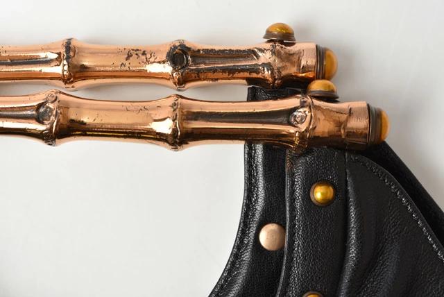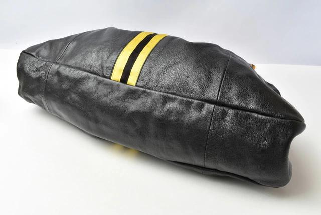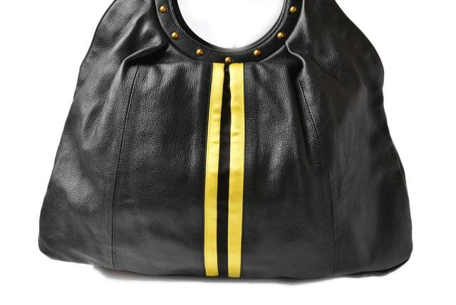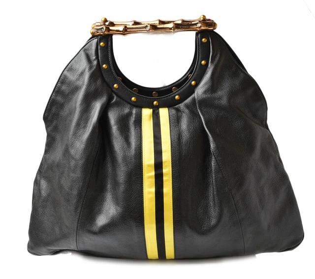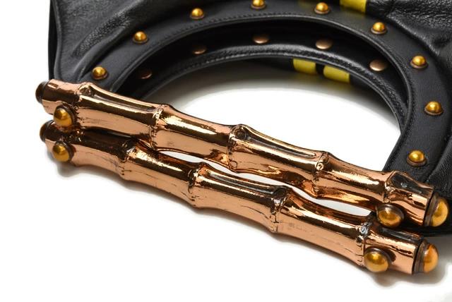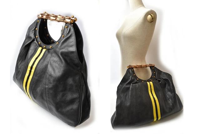 GUCCI バンブーモチーフ レザー シェリーライン ブラック/イエロー 128989