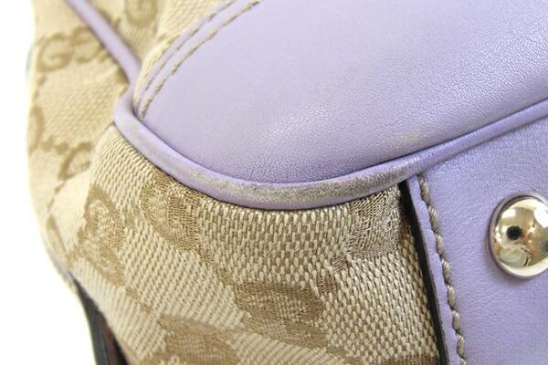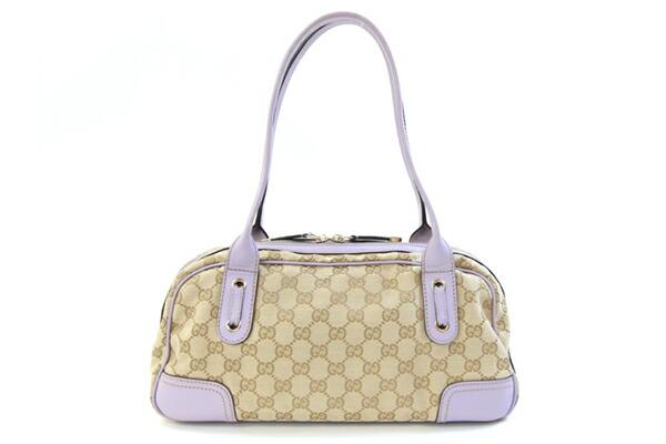 グッチハンドバッグGGプリンシー161720ベージュラベンダーキャンバスレザー中古ショルダーリボンGUCCI