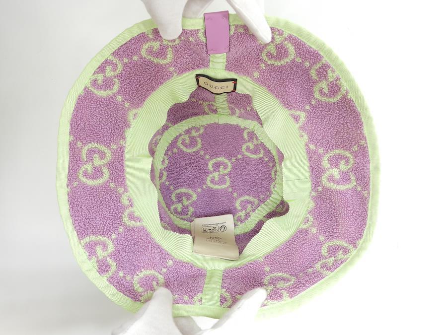 #Gucci #BaguetteHat #Hat #Baguette #Viscosa #Cotton #PileFabric #Green #Pink #90%new #authentic #GG #secondhand #wholeSale #haibanya #aisai-jp #転売可