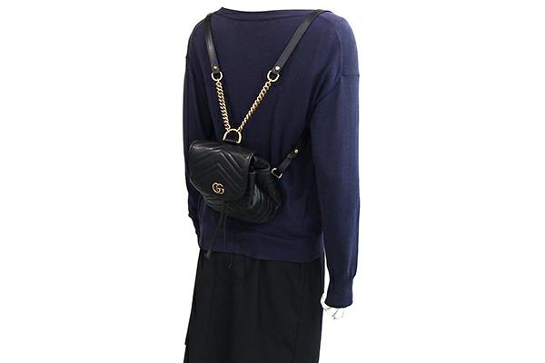 Pre-owned Gucci GG Marmont Backpack 528129 in Black Leather. Mini Backpack with GG Logo and Double G Quilting. Women's.