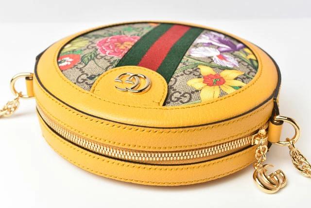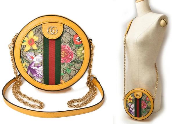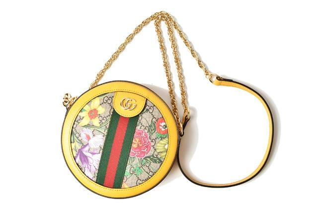 グッチより、チェーンショルダーバッグです。グッチの伝統的なデザインアイコンのウェビングラインと華やかなフラワー。定番人気のGG柄とのコラボがおしゃれです!コロンとした丸いフォルムが、可愛らしいです。