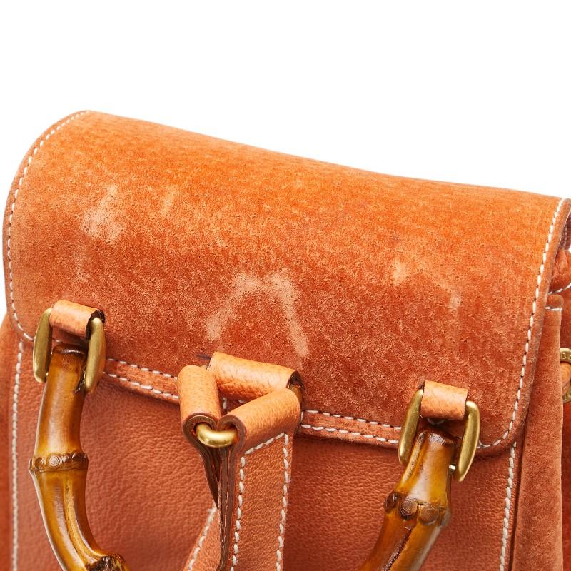 Pre-owned Gucci Bamboo Backpack 003 2058 0030 in orange suede and leather. Women's.