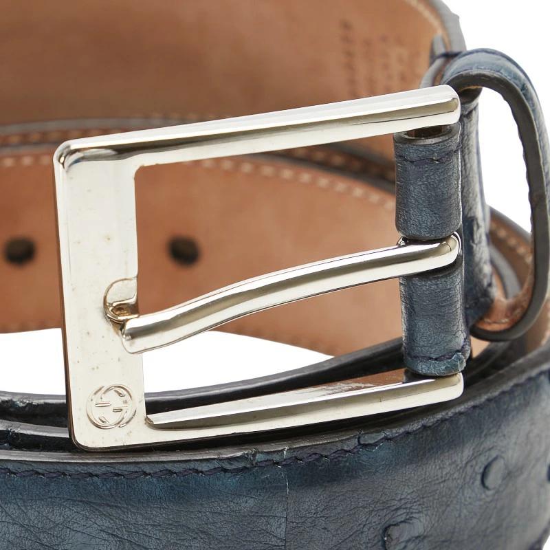 Pre-owned Gucci Belt, Size 90/36, 345658, Navy Ostrich Leather, Women's.