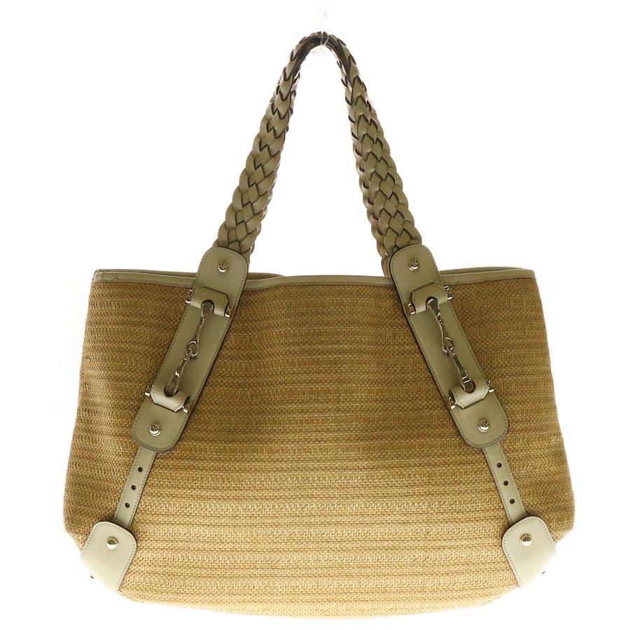 [モデル]ホースビット トートバッグ ベージュ ストロー×レザー 137621