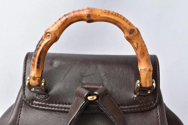 グッチより、ミニリュック バンブー/バックパックです。レトロな雰囲気を残しつつ、ヴィンテージ加工を施したデザイン。持ち手には、グッチならではのバンブーを使用しています。