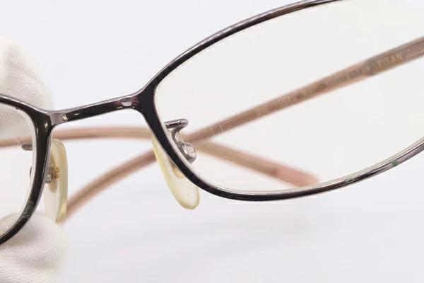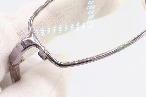 | 状態 | フレーム:レンズ周りに腐食・緑ヨゴレあり。所々小キズ、薄スレあり。 アーム:スレ・薄汚れ・クスミヨゴあり。 丁番:緩み・歪みがあり、片側テンプル先端にかなり浮きあり。 レンズ:小キズあり。 パッド:黄ばみ・ヨゴレあり。 |
