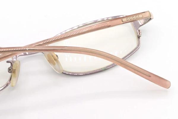 | 状態 | フレーム:レンズ周りに腐食・緑ヨゴレあり。所々小キズ、薄スレあり。 アーム:スレ・薄汚れ・クスミヨゴあり。 丁番:緩み・歪みがあり、片側テンプル先端にかなり浮きあり。 レンズ:小キズあり。 パッド:黄ばみ・ヨゴレあり。 |