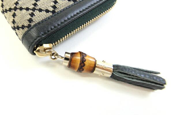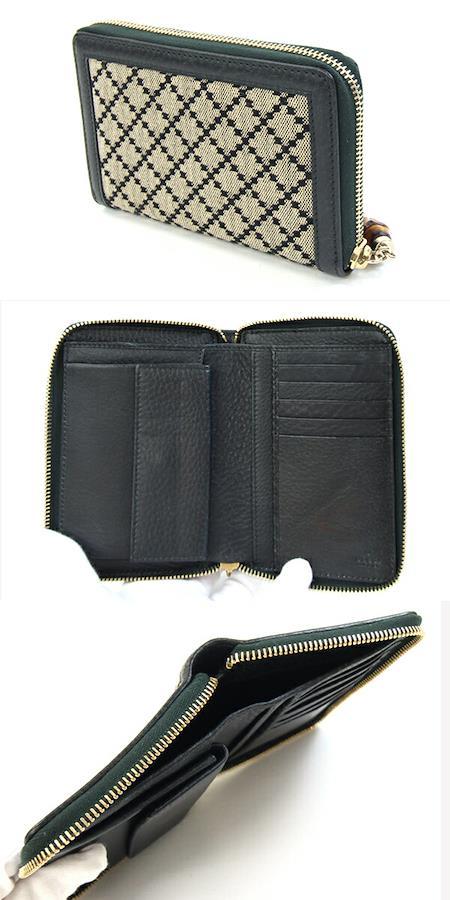 グッチラウンドファスナー財布ディアマンテ224256グリーンキャンバスレザー中古二つ折り財布ラウンドジップバンブータッセルレディースGUCCI