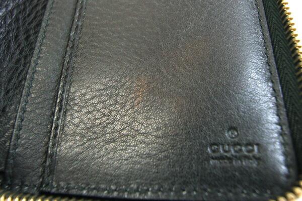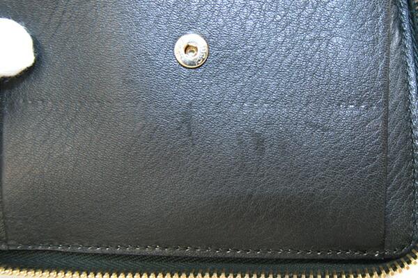 状態:外側:多少薄スレ感あり。ファスナー生地にヤケたような色褪せあり。内側:小銭入れ面に薄引っかきキズあり、札入れのフチに薄スレあり。所々テカリ変色あり。金具:微細なキズ、クスミあり。