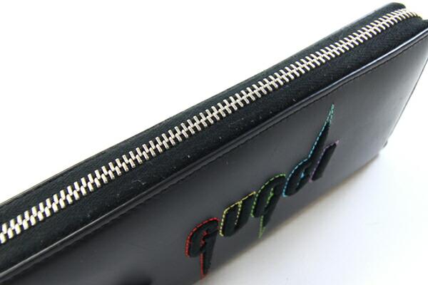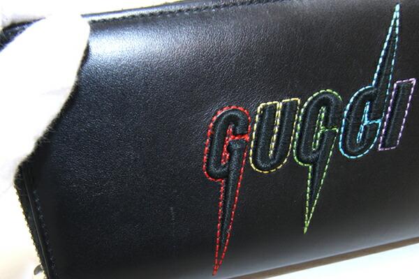 グッチラウンドファスナー長財布ブレードエンブリロイダリー597677ブラックレザー中古ジップウォレットロゴステッチマルチカラーGUCCI
