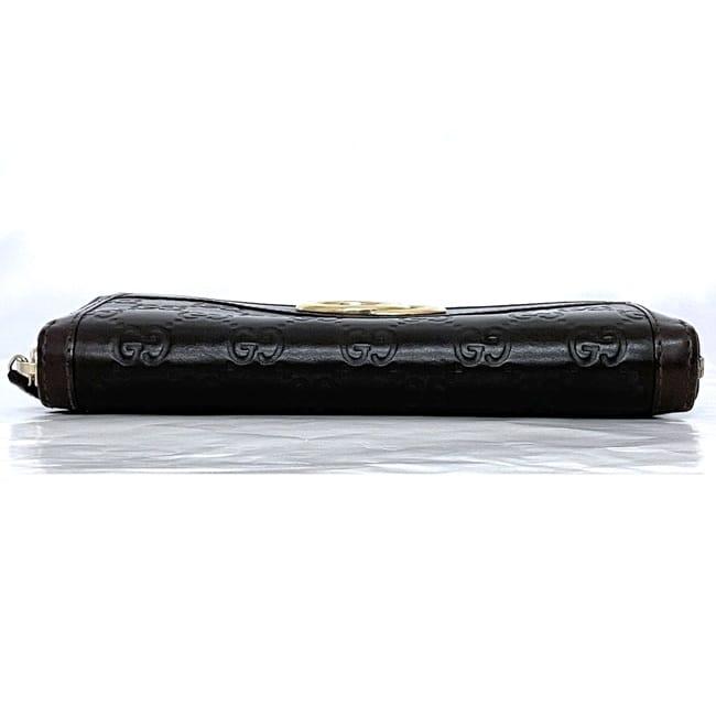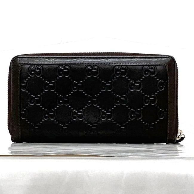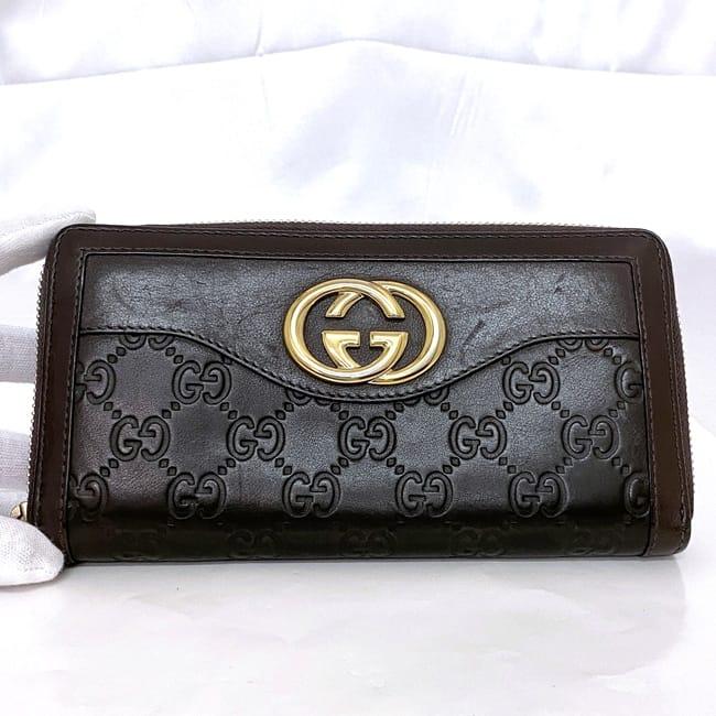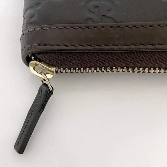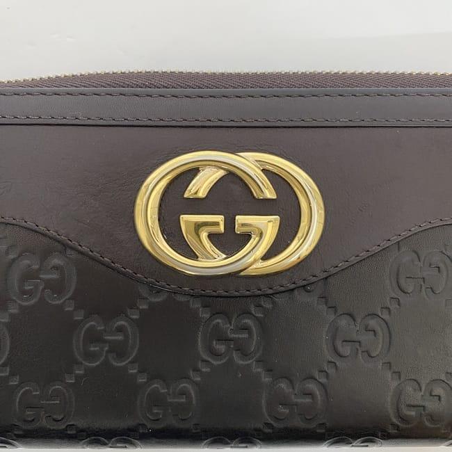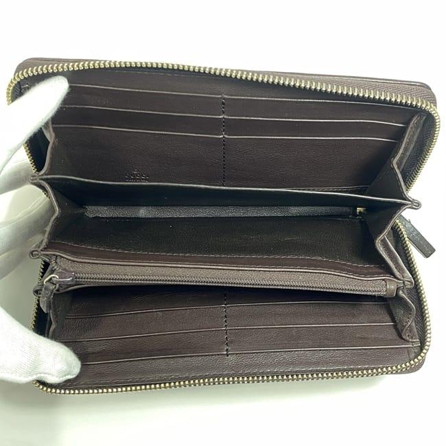 グッチ ラウンドファスナー 長財布 ec-22588 ブラウン シマライン 308012 財布 レザー 中古 525040 GUCCI GG インターロッキング 総柄 ロゴ シマ ファスナー 定番 人気 レディース 小物 革 茶色 ワンポイント シンプル お洒落 高級感 ブランド 本物 鑑定済み