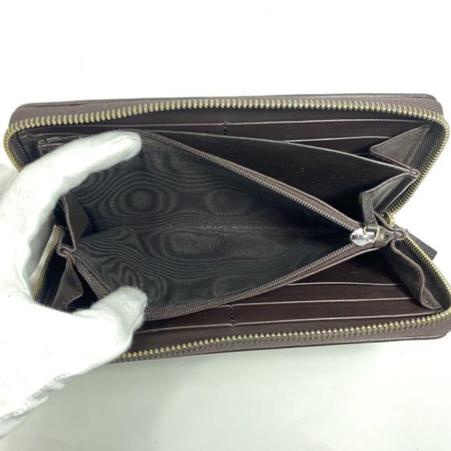 詳細説明:角に擦れ、表面に薄傷や皺、ロゴ金具に傷や色落ち、ファスナープルのレザーに擦れ、小銭入れ以内に薄汚れ等使用感がございますがまだまだお使いいただけるお品物です。