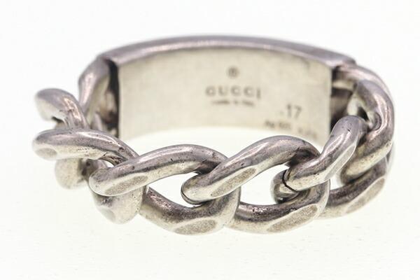 グッチリングゴルメットチェーンリング678711シルバーグリーンSVスターリングシルバー925サイズ17中古指輪アクセサリージュエリーメンズGUCCI