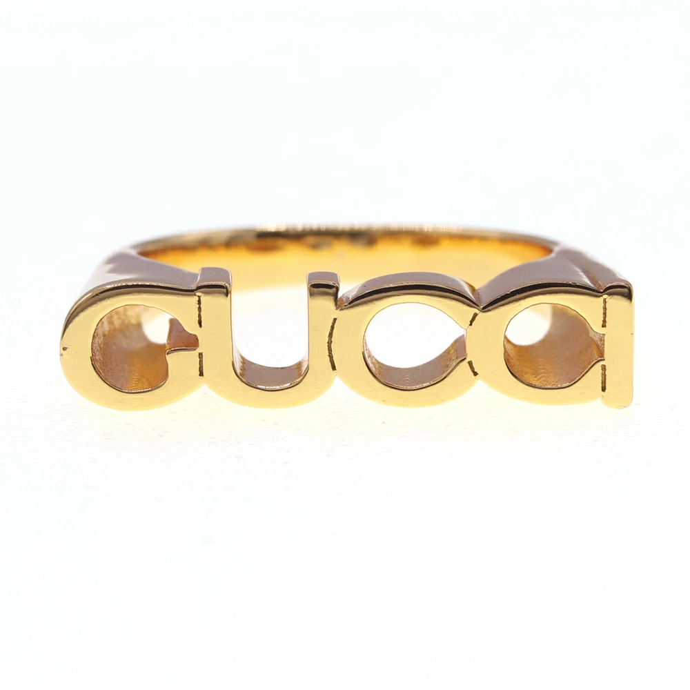 グッチリングロゴリング773855ゴールドメタルMサイズ中古指輪アクセサリーレディースメンズGUCCI