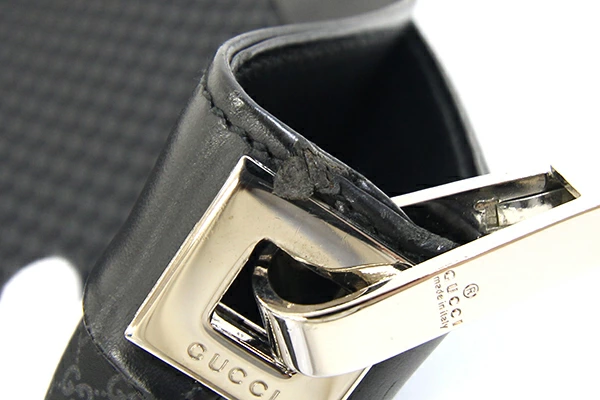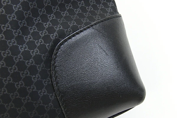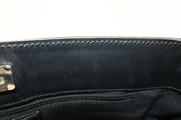 | 状態 | 外側:レザー部分所々小キズ・薄スレ・シワあり、角はスレによる色褪せあり。入口のフチに白い汚れあり。両サイド金具上にショルダー金具によるすり減り・メクレあり。 内側:薄汚れあり。 金具:小キズ、クスミあり。 |