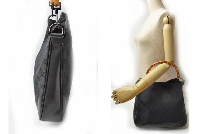 GUCCI ヴィンテージ バッグ バンブー GGキャンバス/レザー ブラック