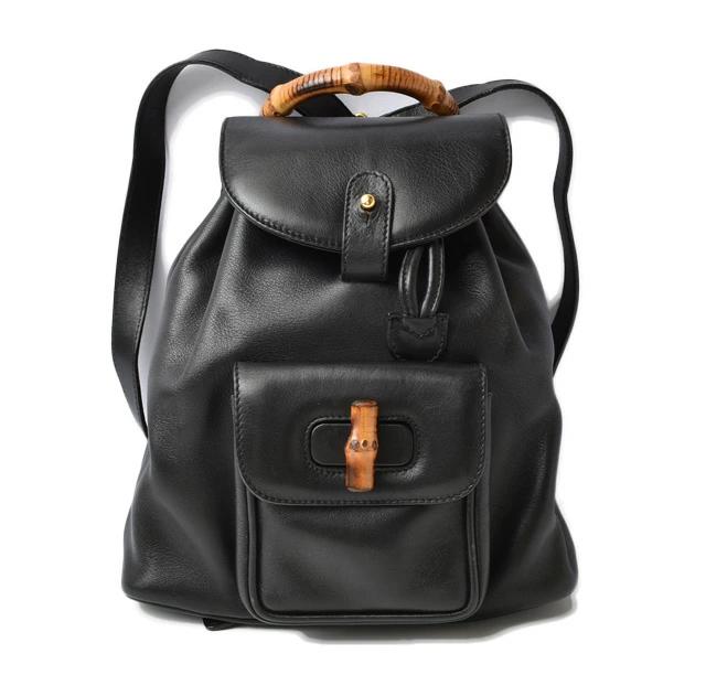 グッチより、ミニリュック バンブー/バックパックです。レトロな雰囲気を残しつつ、ヴィンテージ加工を施したデザイン。持ち手には、グッチならではのバンブーを使用しています。