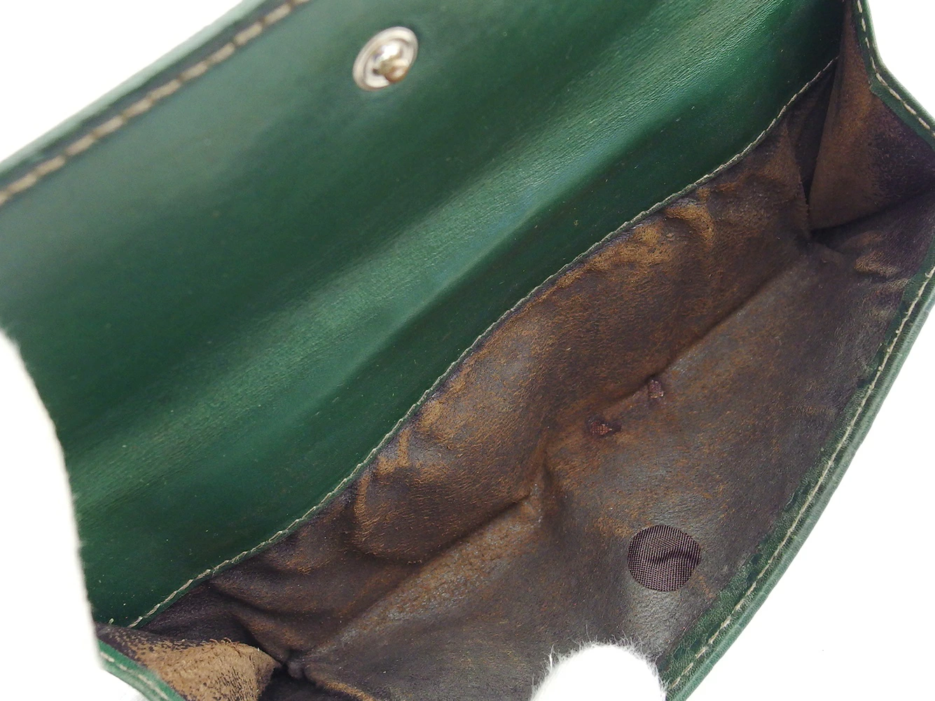 | コンディション | 全体の状態詳細:一部使用感はございますが、まだまだ十分ご使用いただけます。社外リペア跡(縁部分の補修&着色補修)あり。外側:レザー(角スレ&折り曲げ部分に補修及び着色跡、シワ、傷)、開閉部分のレザー(シワ、湾曲部分にヒビ割れ)、小銭入れ内(黒ずみ汚れ、傷、内張レザースレ&剥がれ)あり。内側:レザー(傷、若干の黒ずみ)、カード入れ(カード跡、シワ)あり。その他、中古品のため 目立たない 傷 汚れ などの一般的使用感があります。 |