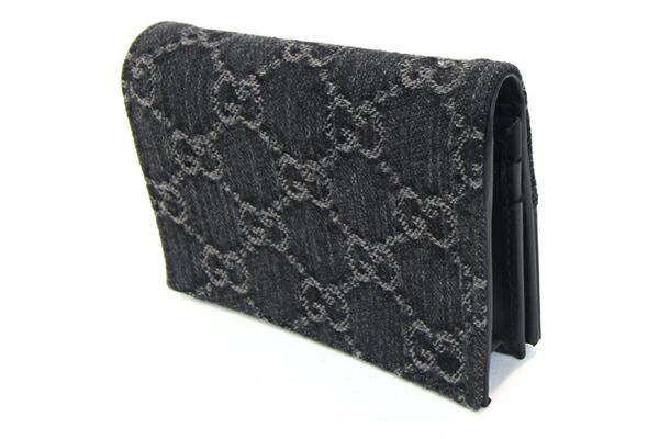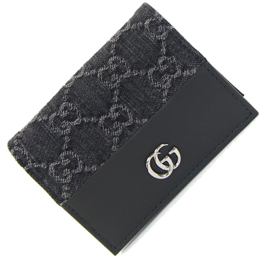 グッチ二つ折り財布ダブルGミニウォレット658610ブラックデニムレザー中古コンパクトウォレットミニ財布GGロゴレディースGUCCI