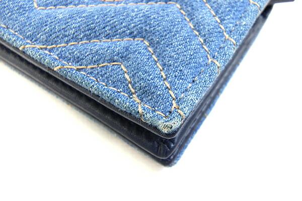 グッチ二つ折り財布GGマーモント466492ブルーデニムレザー中古コンパクトウォレットロゴキルティングミニ財布レディースGUCCI