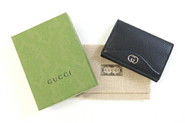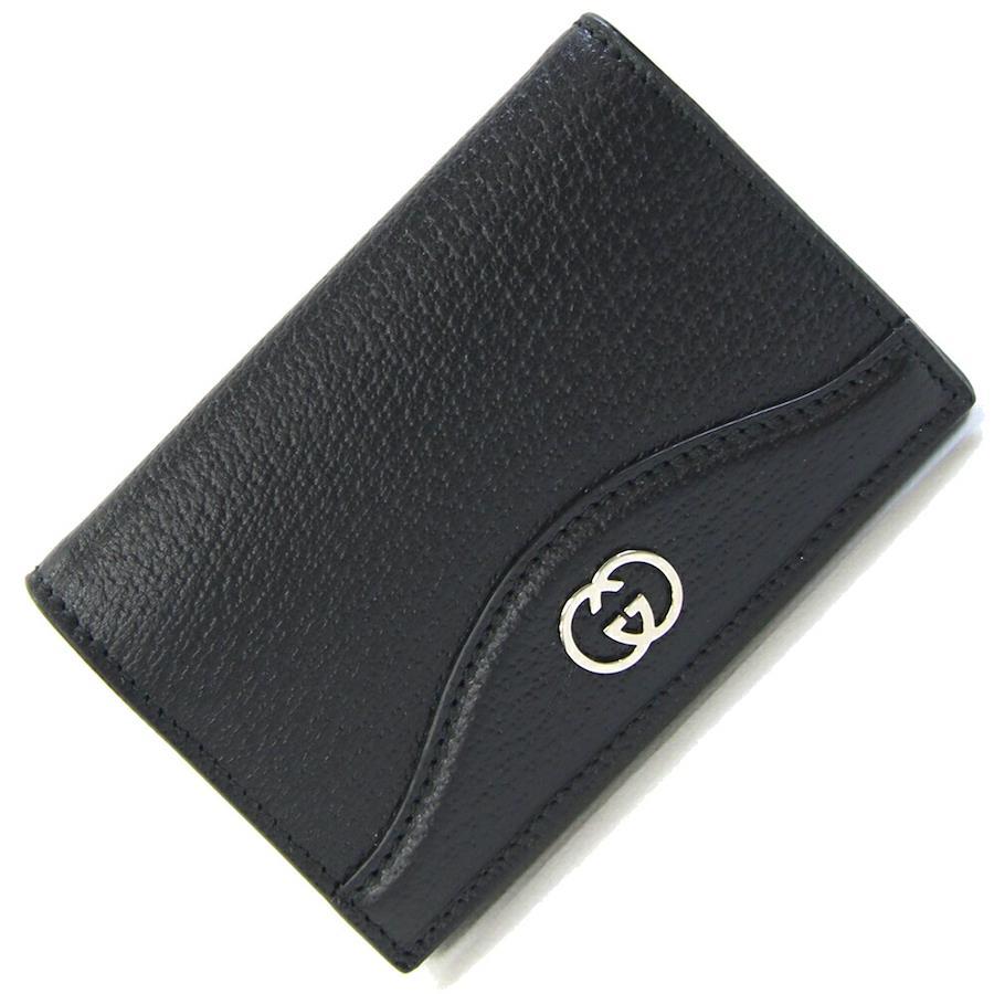 グッチ名刺入れインターロッキングG739425ブラックレザー中古カードケースビジネスロゴメンズGUCCI